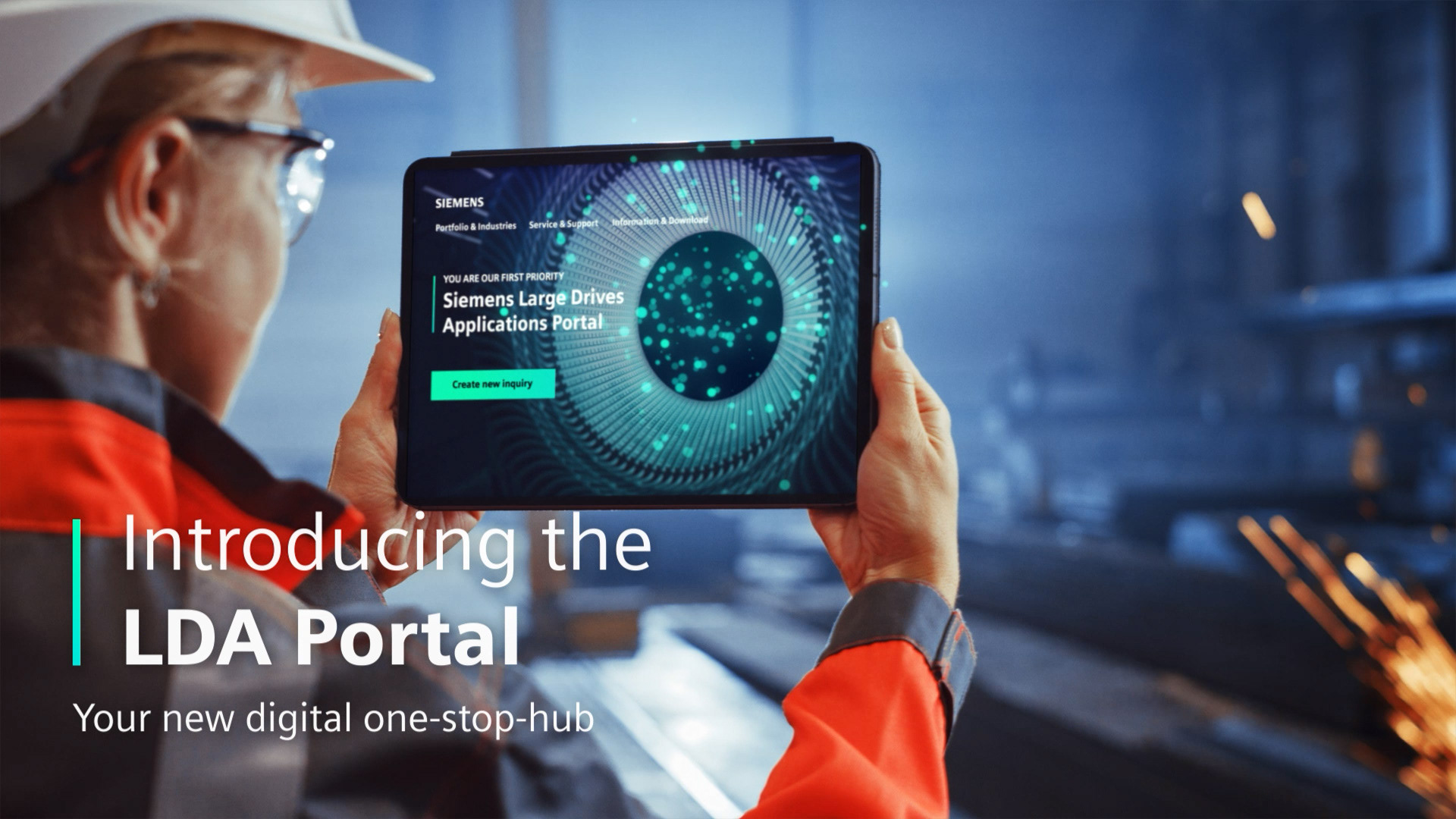 Promo trailer and teaser for the Siemens Large Drives Applications (LDA) Portal. The sequence combines live action footage with a seamless transition into a 3D-animated tunnel environment, built in Cinema 4D, leading into a series of motion graphics and title animations created in After Effects.